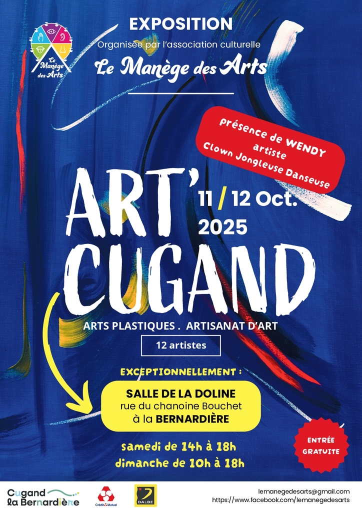 Le temps d'un week-end, les 11 et 12 octobre 2025, Le Manège des Arts réunit 11 artistes à la Bernardière, salle de la Doline pour l'exposition Art Cugand.